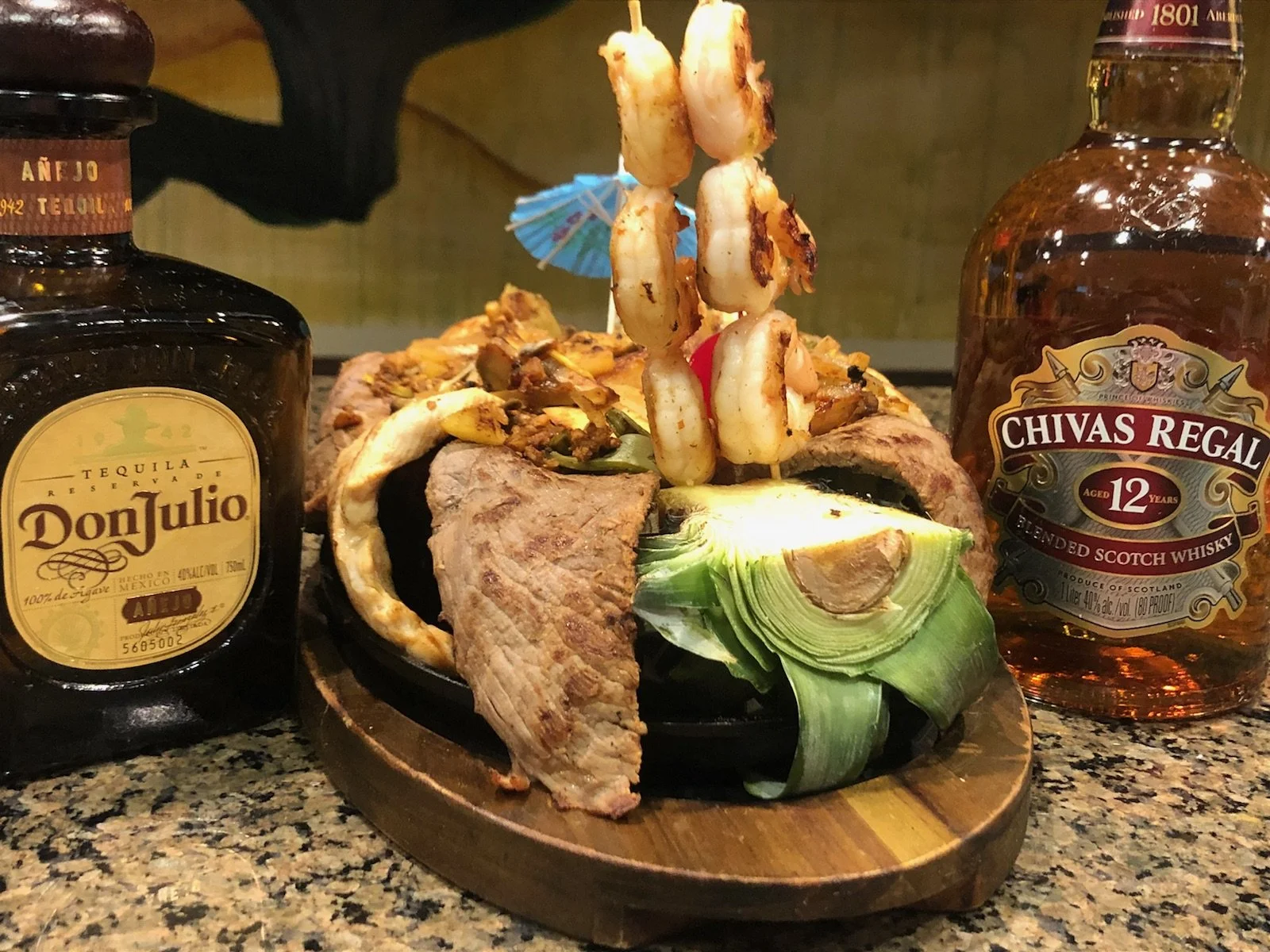 Shrimp, scallops, imitation crab, and tilapia cooked with queso dip, bell peppers, onions, and tomatoes. Choice of flour or corn tortillas.
